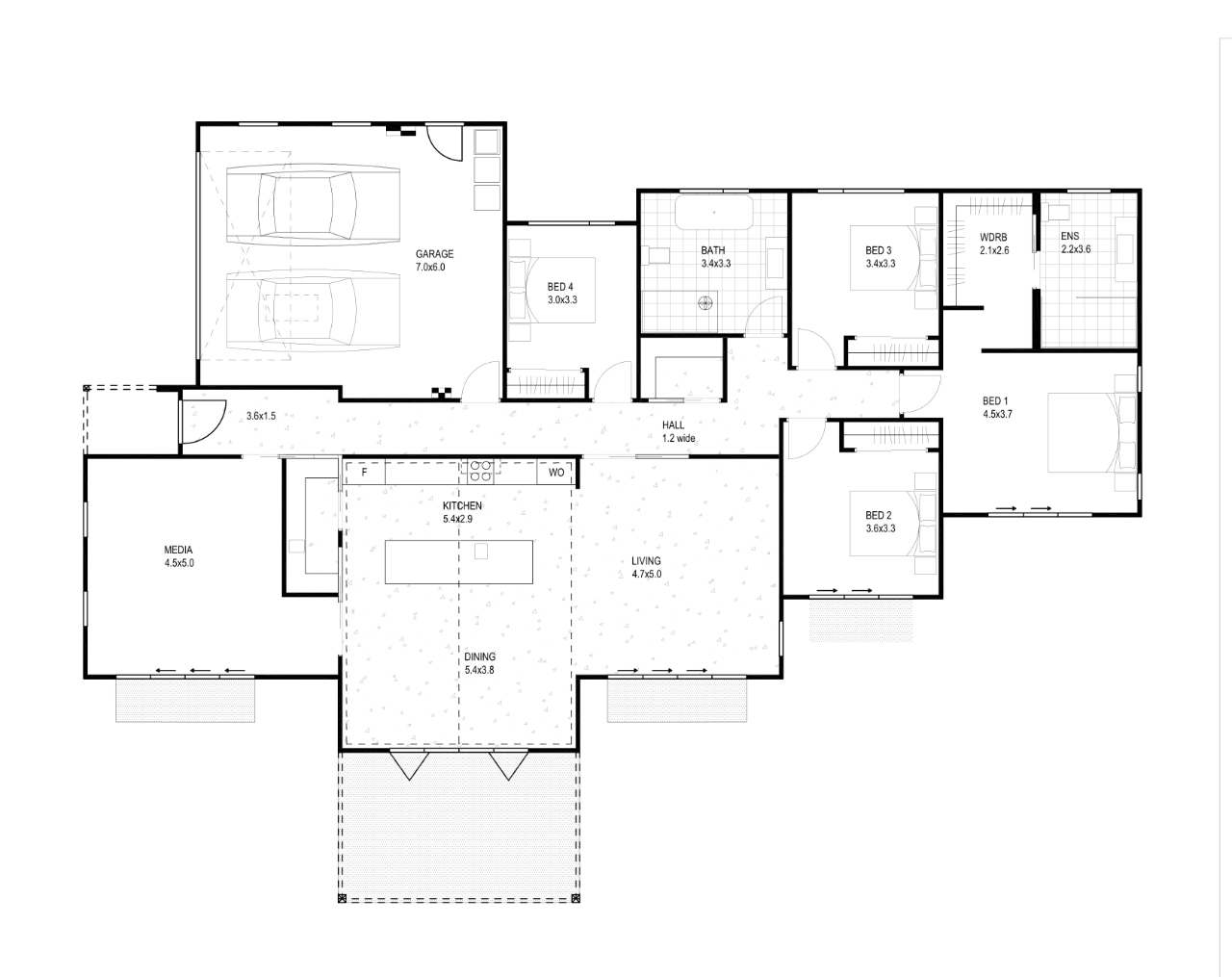 At just under 260m2, this spacoius four bedroom home design is one of our most sought-after family lifestyle homes. The Homestead Luxe is designed for New Zealand rural living and lifestyle blocks. We have built this stunner in many beautiful spots, including on a hill in Hiwinui just out of Ashhurst; in the beautiful foothills of the Tararua’s just out of Shannon in Horowhenua; and in rural Rangitikei on the outskirts of Marton in the Whanganui region. It never fails to impress.