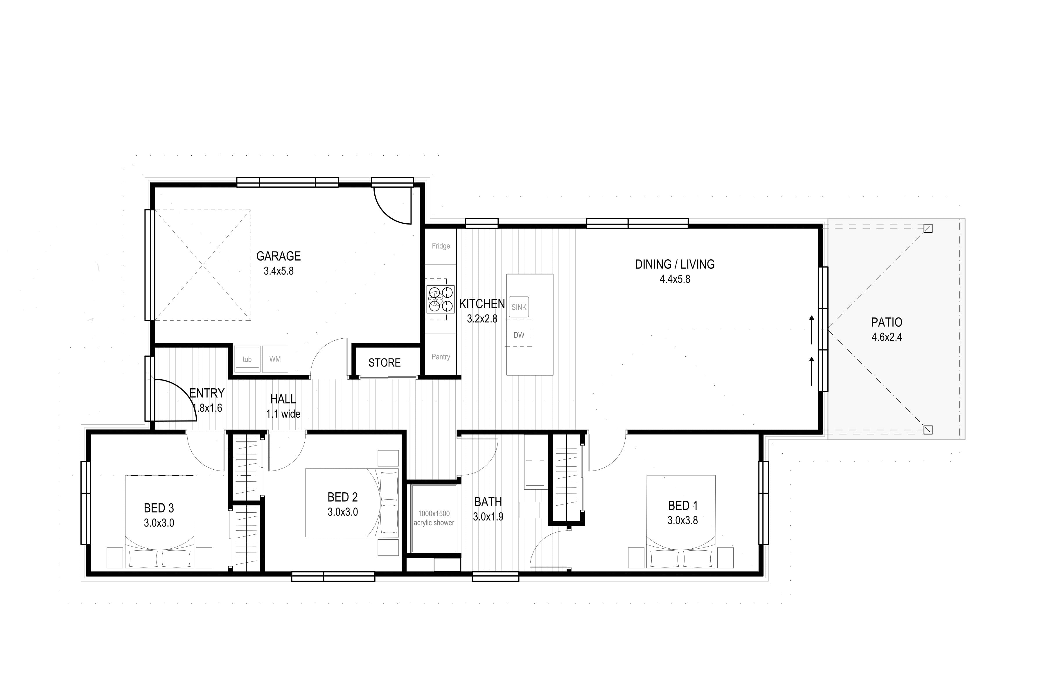 At 125m², this 3 bedroom house plan is designed right here in the Manawatu. It avoids wasted space and focuses on what matters: open, functional living, comfortable bedrooms, and a layout that works for everyday life. Can be built with or without the 11m2 covered patio, depending on your section and budget. It's an affordable new home design that delivers all the basics, plus a bit extra.