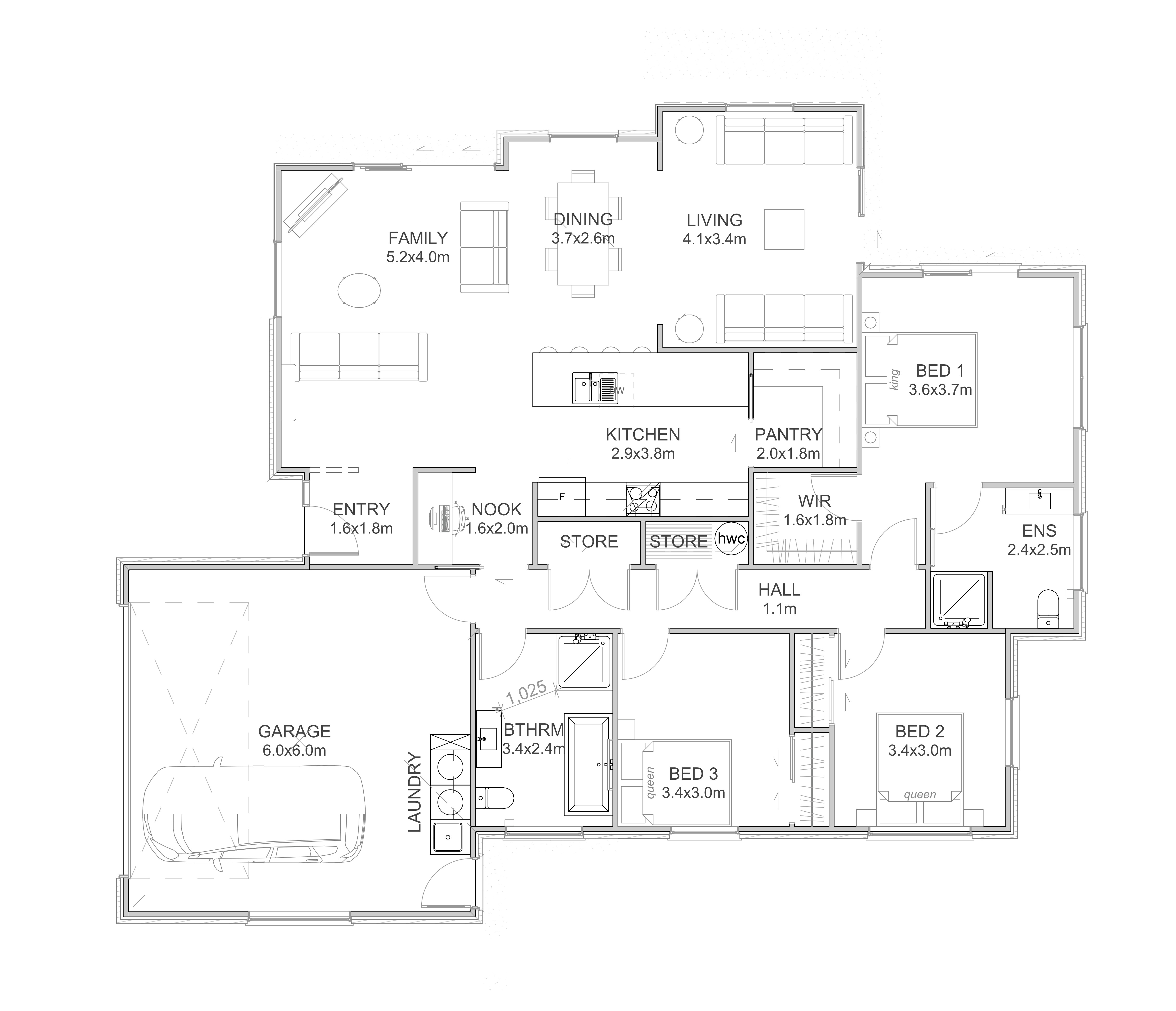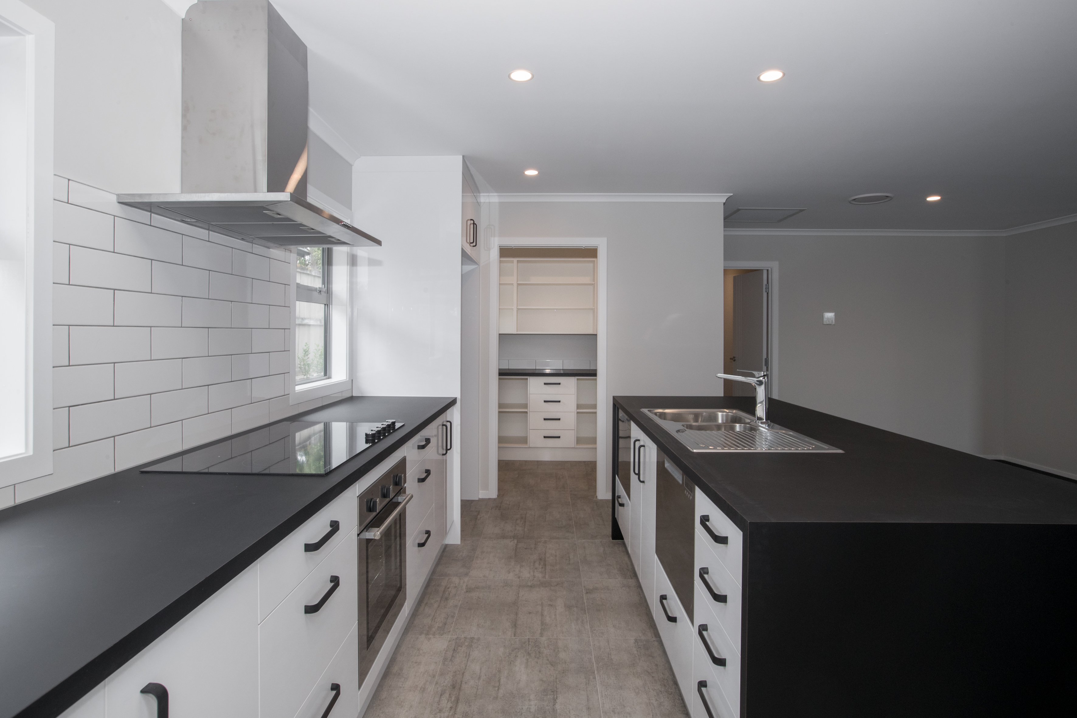 Smaller homes, designed well, can still incorporate the features you expect. A slimline butler's pantry and large L shaped kitchen with a feature dining table provides all the working space you need.