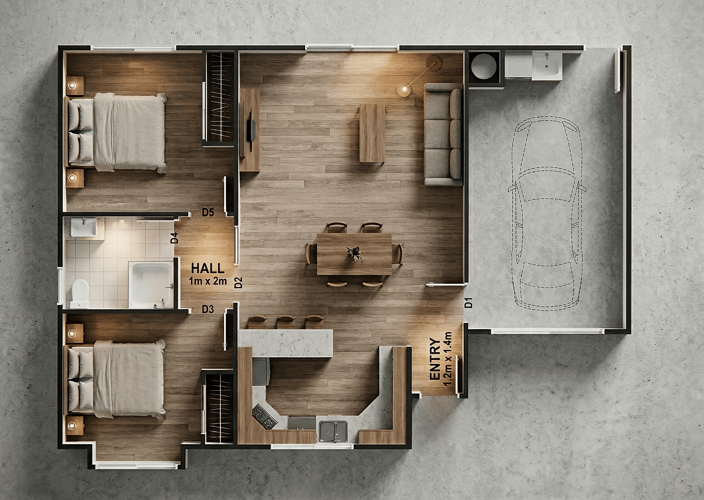 What sets this property apart from the others in Hof Lane is that it is not only one of only two standalone dwellings, it also has a lovely sunny courtyard with easy access to the open plan living area. This 2 bed, 1 bath home has the same easy care exterior and quality interior fixtures and fittings. Cleverly designed to maximise space, it features two bedrooms and a generous open-plan living area with heatpump. The custom-designed kitchen features a stone benchtop and comes with Fisher & Paykel appliances. The bathroom has a level entry tiled shower to future proof living. We've gone the extra mile with a fully insulated and carpeted garage, and plenty of custom designed storage.