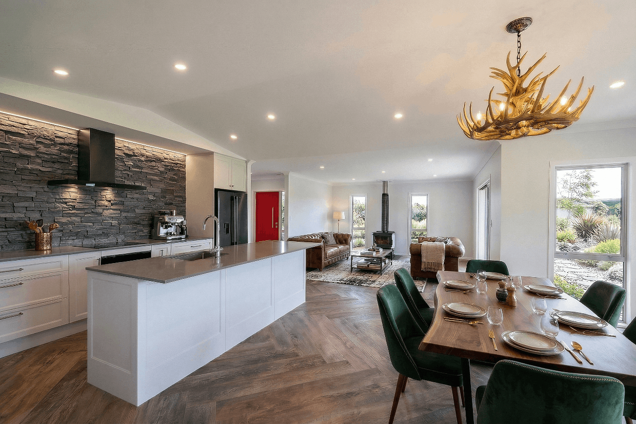 At just under 260m2, this spacoius four bedroom home design is one of our most sought-after family lifestyle homes. The Homestead Luxe is designed for New Zealand rural living and lifestyle blocks. We have built this stunner in many beautiful spots, including on a hill in Hiwinui just out of Ashhurst; in the beautiful foothills of the Tararua’s just out of Shannon in Horowhenua; and in rural Rangitikei on the outskirts of Marton in the Whanganui region. It never fails to impress.