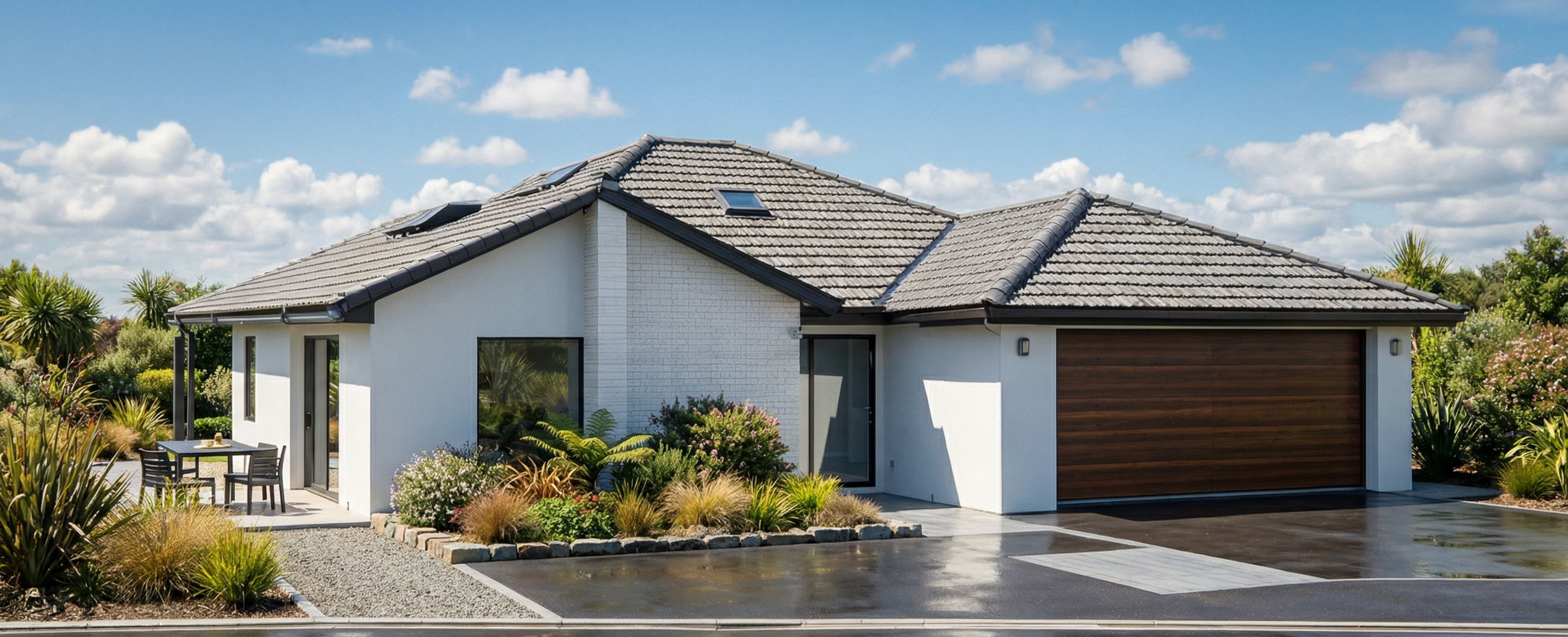 Smaller homes, designed well, can still incorporate the features you expect. A slimline butler's pantry and large L shaped kitchen with a feature dining table provides all the working space you need.