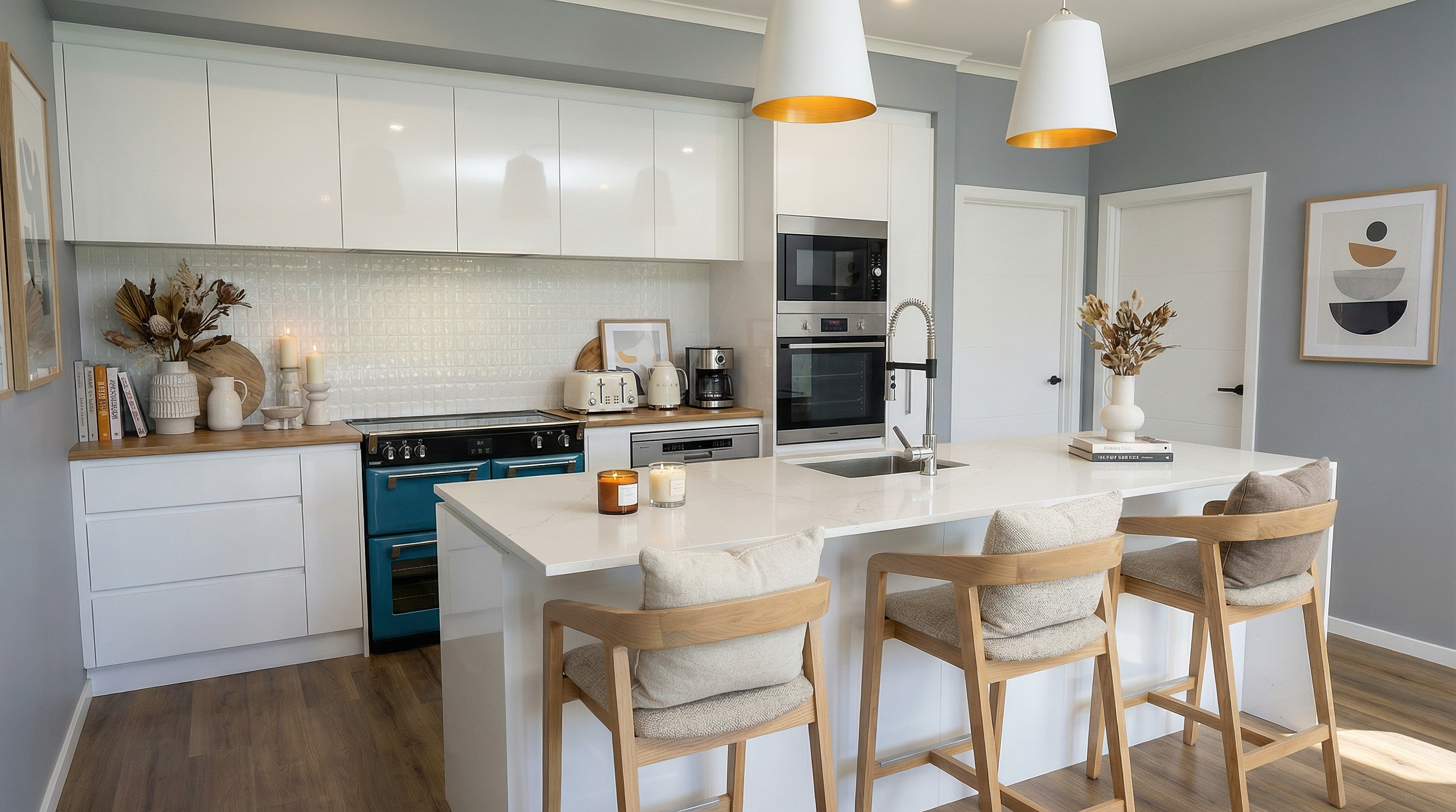 The beautiful open plan living/dining/kitchen area includes a generous scullery and there is also a separate lounge.