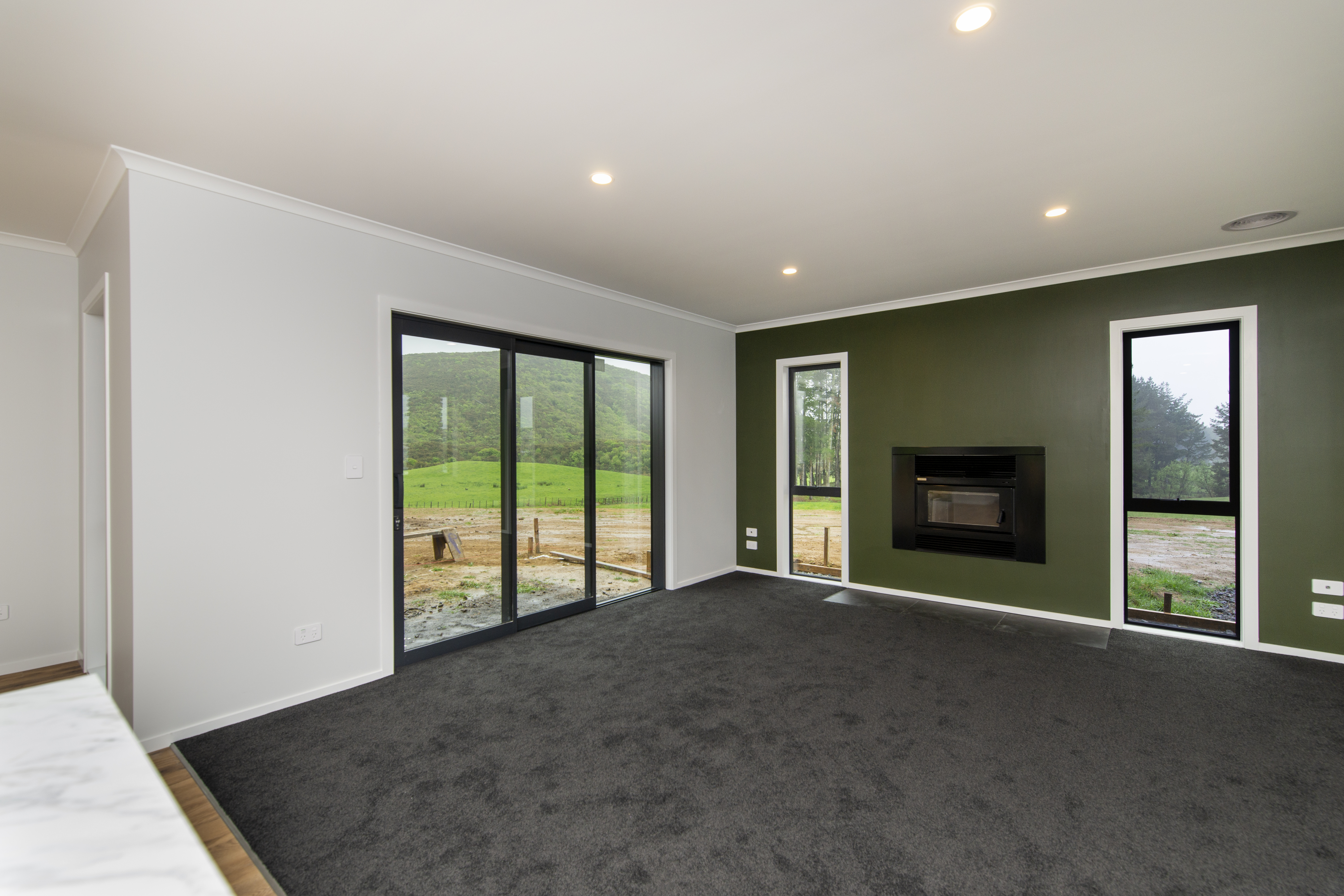 The long open plan living areas are perfect for a north facing site. This version with a three car garage was designed for a lifestyle block – which is it’s ideal location.