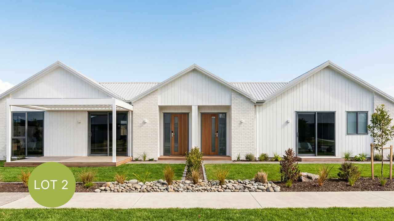 Lot 2 Winchester Street is one of two townhouses in our Winchester street duplex. This complete house and land package offers two generous double bathrooms, a functional bathroom and single garage. The spacious open plan living and kitchen space are perfect for entertaining with plenty of natural light and a modern feel. The kitchen is stylish and practical with streamlined cabinetry, generous bench space, and a central island that anchors the room. For more ease of living, this plan offers internal access to a single garage with an integrated laundry.